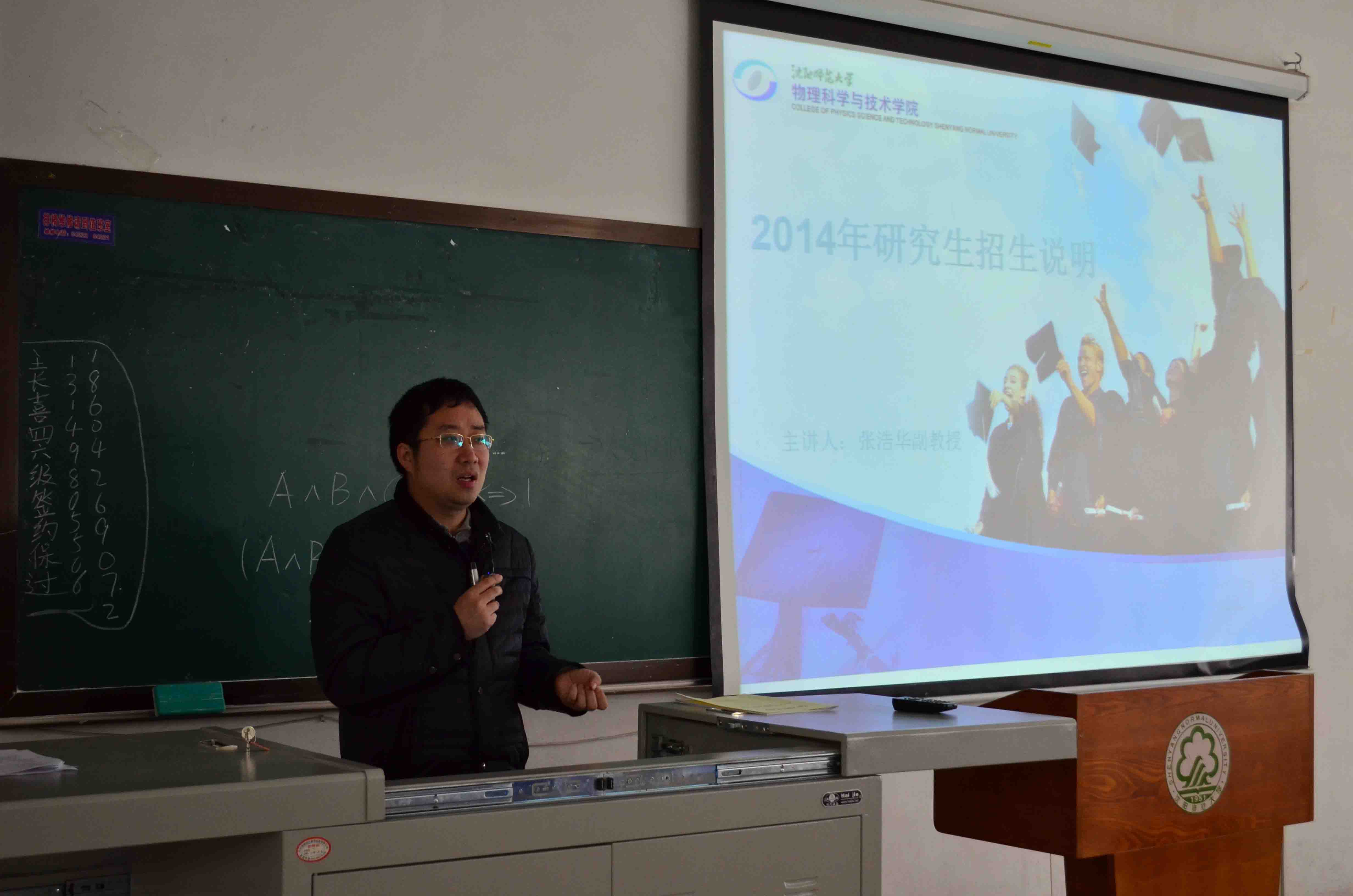 为提高员工考研兴趣和信心,调动员工的考研积极性,帮助考研同学做好考研准备,促进304永利集团学风和考风建设的发展。物理学院于2014年3月5号上午10时在博文楼310召开了2015年研究生考研动员大会。学院副经理张浩华,研究生秘书周园园,2011级辅导员韩雪莹及11级全体本科生参加本次考研动员会,本次大会旨在进一步调动公司员工考研积极性,树立员工考研信心,同时为员工提供更加明确的考研形势分析与指导。