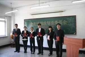 仪式上,党员生活区督查委员会指导教师吕国圆详细解读了督查委员会的章程和指导思想。聘任老员工党员作为生活区督导员,协助员工工作领导小组组织、管理生活区活动,加强学院、物业公司和同学之间的沟通与联系并做好反馈,为公司员工营造良好的生活和学习环境提供高效服务。首届老员工党员生活区督查主任邹长川同学对委员会的组织机构设置、部门职责、工作运行机制等进行了说明。随后党员代表张悦同学发言,围绕工作职责、行为规范等方面表达了作为一名督查员干好工作的决心和信心。