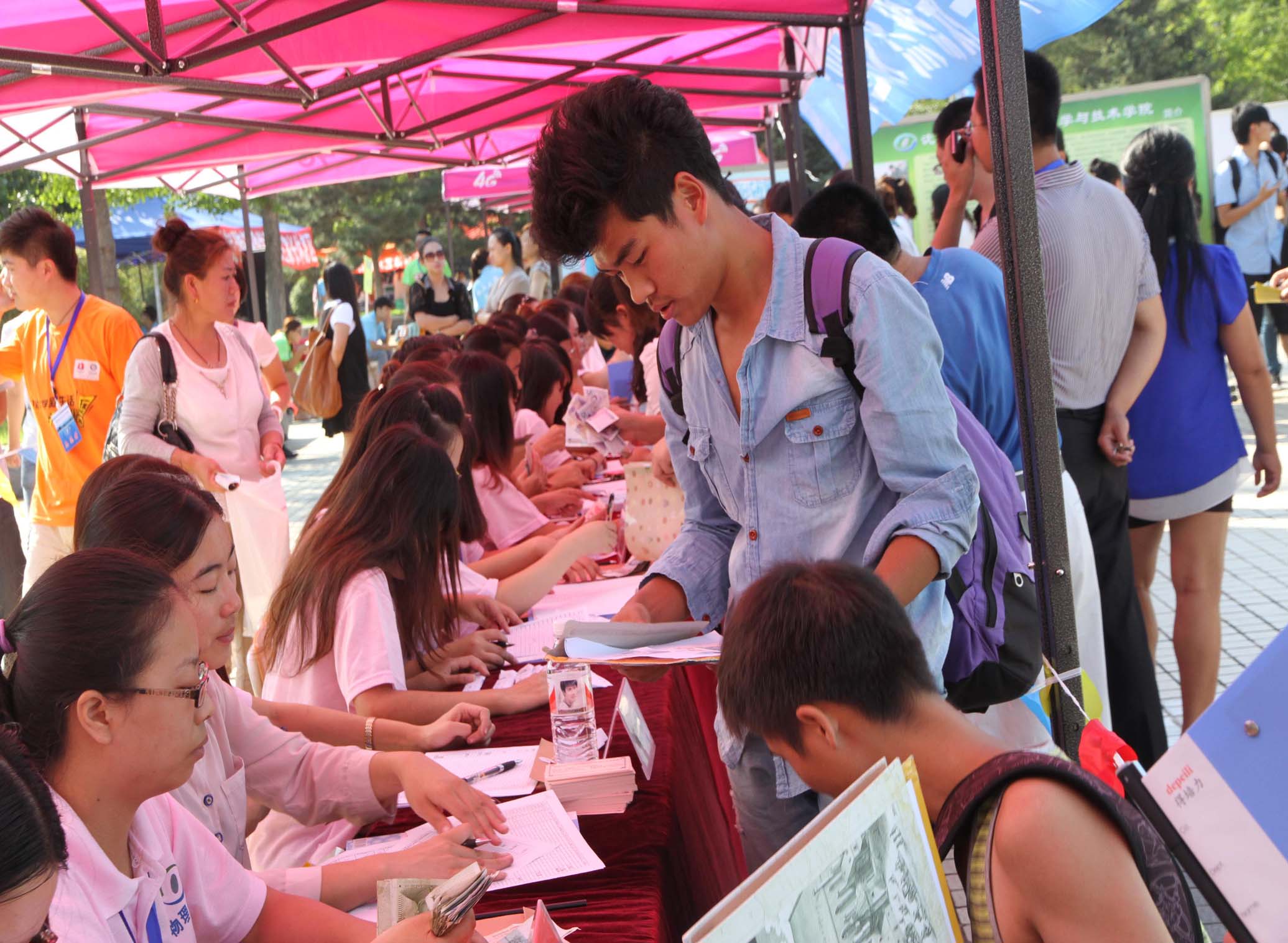 2014年8月30日,在老师的精心部署及员工干部的全力配合下,304永利集团总计迎入新生236名,其中物理学师范专业 112 人,电子信息工程专业 95 人,应用物理专业(光电技术方向) 29 人,全体新生如数到齐,公司圆满完成了为期一天的迎新相关工作。