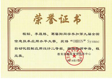 2014年12月6日,由教育部教育管理信息中心主办,欧姆龙自动化有限公司赞助并协办的全国第九届全国信息技术应用水平大赛—《“OMRON杯”Sysmac自动化控制应用设计大赛》决赛在北京航空航天大学落下帷幕。本届赛事于2014年6月开始,共吸引了来自北京理工大学、北京航空航天大学、东北大学、北京工业大学和山东理工大学等全国各高校近两百支参赛队伍。
