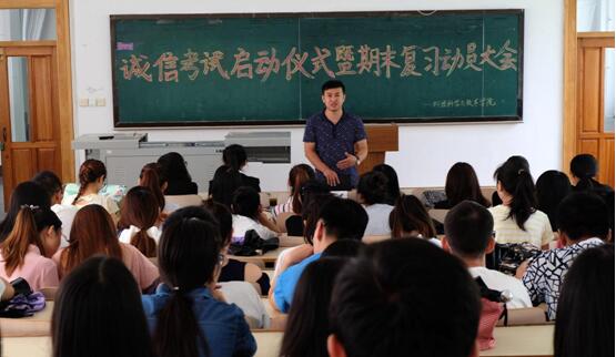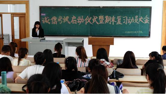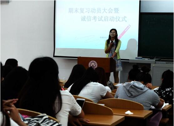 按照计划,各会场上,先由专业成绩排名前三的同学分别讲述自己诚信的经历与事迹,并就期末复习方法与全体同学进行了分享。其次,专业教师代表分别结合自己的教学经验、指导经历和员工实际情况,为同学努力复习、诚信考试做了动员。最后,由各会场负责人做了总结和强调发言。
