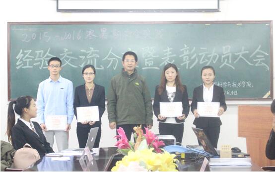 大会伊始,由社会实践部部长王晓妍介绍公司员工参与社会实践的获奖情况以及公司对社会实践的组织和奖励方案。之后由优秀团队代表14级吴艳敏以及15级曹欣茹同学依次进行了ppt展示和经验交流。随后,公司对校级、院级优秀团队,优秀成果以及优秀个人进行了颁奖。颁奖结束团委副书记王溪文同学进行了动员演讲,强调了社会实践的价值和意义,鼓励大家积极参与,并在材料撰写和审核方面提出了相应的要求。最后,党总支副书记兼副经理张礼庆老师做了发言,对过去一年公司社会实践活动进行了分析与指导,同学们都认真聆听。在热烈的掌声中,此次社会实践交流表彰大会圆满结束,会议结束后获奖同学和颁奖老师合影留念。