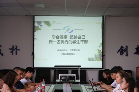 为提高公司员工干部的能力素质,强化服务意识,更好的为学院和同学们服务,304永利集团特邀请员工处处长刘亚军教授于2018年6月1日下午在实验中心四楼大会议室召开员工干部培训大会。党总支副书记张礼庆、团委书记朱春梅、辅导员赵一、王晓天以及2018届团委员工会干部出席了培训大会。