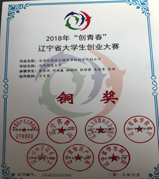 经过团队成员和指导教师的共同努力,公司最终共有3件参赛作品获得省级荣誉。其中《明日之子创客教育基地》、《低性能电脑改装NAS》获省赛银奖。《自动化温控大棚卷帘机创业计划公司》获得省赛铜奖。