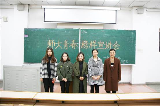 为加强优秀青年员工模范带头作用,响应团中央的号召,充分展示青年员工朝气蓬勃、奋发向上的青春风采,304永利集团联合化学化工学院于2018年10月13日在博文楼举办了“师大青春榜样”宣讲会。304永利集团团委副书记李晴、化学化工学院团委副书记冯建铭以及2018年师大青年成长榜样白玉爽出席了本次活动,化学化工学院周玉娴担任本次活动主持。