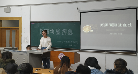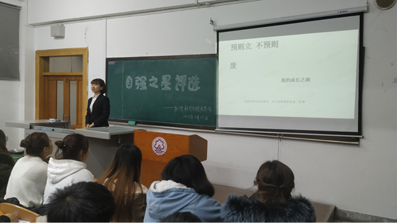 活动伊始,由主持人宣布比赛开始,介绍比赛流程及选手。比赛过程中选手结合PPT进行自身经历的讲述。选手们用生动的语言将自己的自强经历娓娓道来,同学们深受鼓舞。接下来由优秀创业代表梁姗姗进行经验分享,最后由支持人公布获奖名单:自强之星获得者:王可欣,李鑫宇;励志老员工:赵博,宋万隆,刘岩。活动最后参赛选手与嘉宾合影留念。