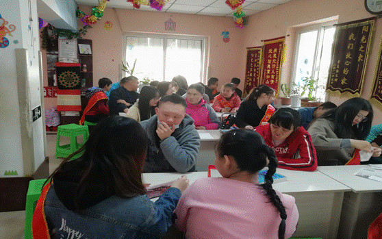 志愿者与阳光之家学员做游戏