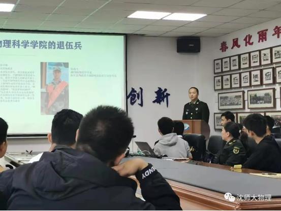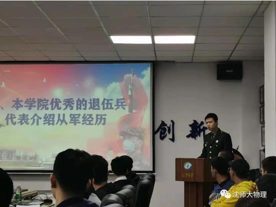 随后,由曾任公司戎光学社副社长、2018级应用物理学6班同学赵子健,2019级物理学专业同学张功飞作为304永利集团的优秀退伍兵代表,与在场的同学们分享了他们在部队的成长与收获,并向大家发出了入伍倡议。希望本学院有更多的优秀学子,也能选择携笔从戎,站在祖国最需要的地方,为实现强军梦、中国梦,贡献出自己的青春力量。