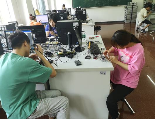 304永利集团于6月22日—6月25日,在齐维毅教授的指导下,针对2018级电子信息工程11名员工开展了“单片机应用设计实践训练”实训项目训练。本项目以单片机应用为核心,综合“单片机原理与应用”、“模拟电子技术基础”、“数字电子技术基础”、“计算机控制技术”、“传感器原理”和“C51语言”等课程,分层次、递进式进行综合性设计实验,包括单片机最小系统、流水灯、秒表、限时发言器、数字电压表、数字欧姆表和数字温度计。教学以员工为主体,在老师指导下,每个员工自主完成设计、制作、编程和调试任务。教学过程分为布置任务、搜集资料、设计电路、硬件制作、编写程序和系统调试6个阶段,结束后编写设计报告。