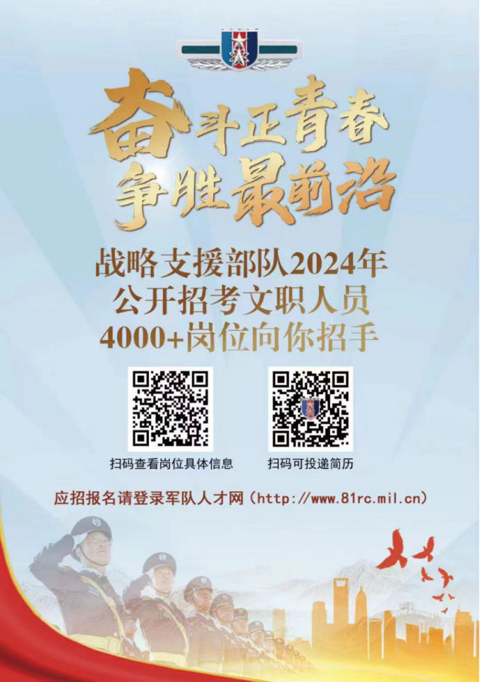 为延揽社会优秀人才为军队建设服务,根据《中国人民解放军文职人员条例》、《军队文职人员公开招考暂行规定》及有关规定,中央军委政治工作部将组织实施2024年面向社会公开招考七级文员以下岗位管理类文职人员和中级以下岗位专业技术类文职人员工作。现就有关事项公告如下:
