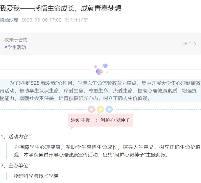 我爱我——感悟生命成长,成就青春梦想