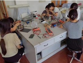 员工在组装并测试小车系统