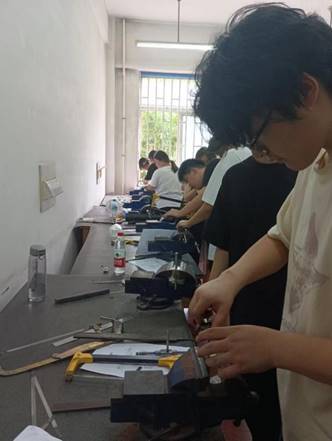 金工实习是高校工科专业必修的实践类基础课程,是工科员工学习机械制造的基本工艺方法,培养工程素质的重要必修课。2024年6月20日至24日,电子信息工程专业大一员工开设了钳工实验。通过小学期训练,员工掌握了钳工基本工艺的操作方法,刮削、扩孔、绞孔和錾削等工艺的操作技能,独立完成了含有划线、锯削、锉削、钻孔、攻螺纹和套螺纹的钳工作业件。