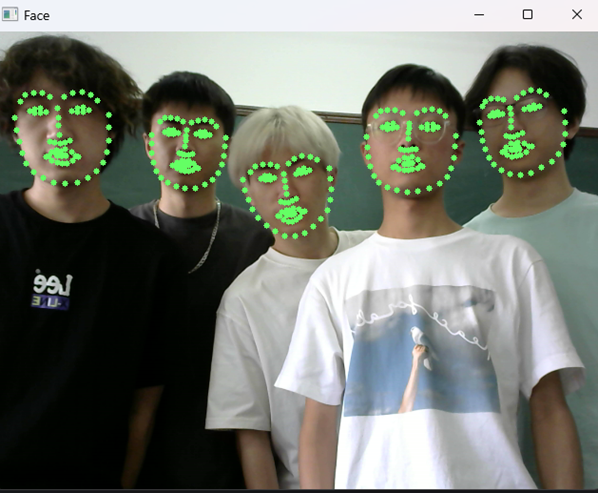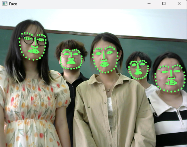 在实训期间,员工在教师指导下,建立人脸框图,实现单张人脸识别,同时提取人脸68个特征点;获取了人眼和嘴部若干特征点,通过人脸特征点判断是否困倦;同时根据参数设置、程序改进,完成多张人脸识别,并根据不同人眼特征和实验室灯光环境,设置相关参数,提升判断困倦的准确度。该项训练为员工毕业设计、就业或读研打下良好的基础。