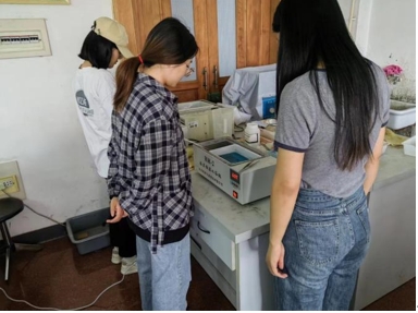 员工在组装并测试小车系统